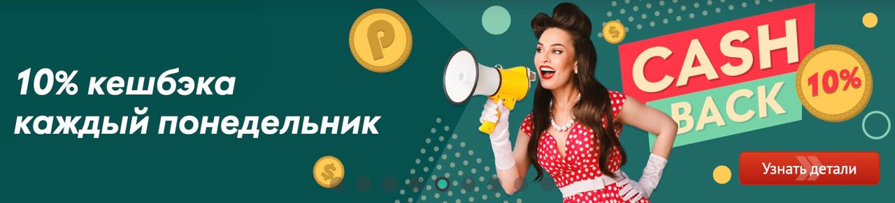 - Еженедельный кэшбек – начисляется каждый понедельник, и помогает вернуть до 10% потраченных средств;